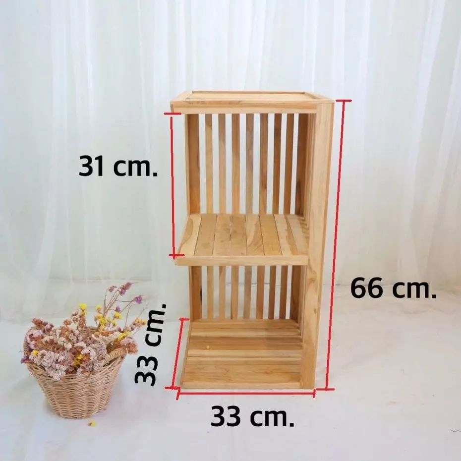 ขนาด กว้าง 33 เซนติเมตร ลึก 33 เซนติเมตร สูง 66 เซนติเมตร ความสูงระหว่างชั้น 31 เซนติเมตร